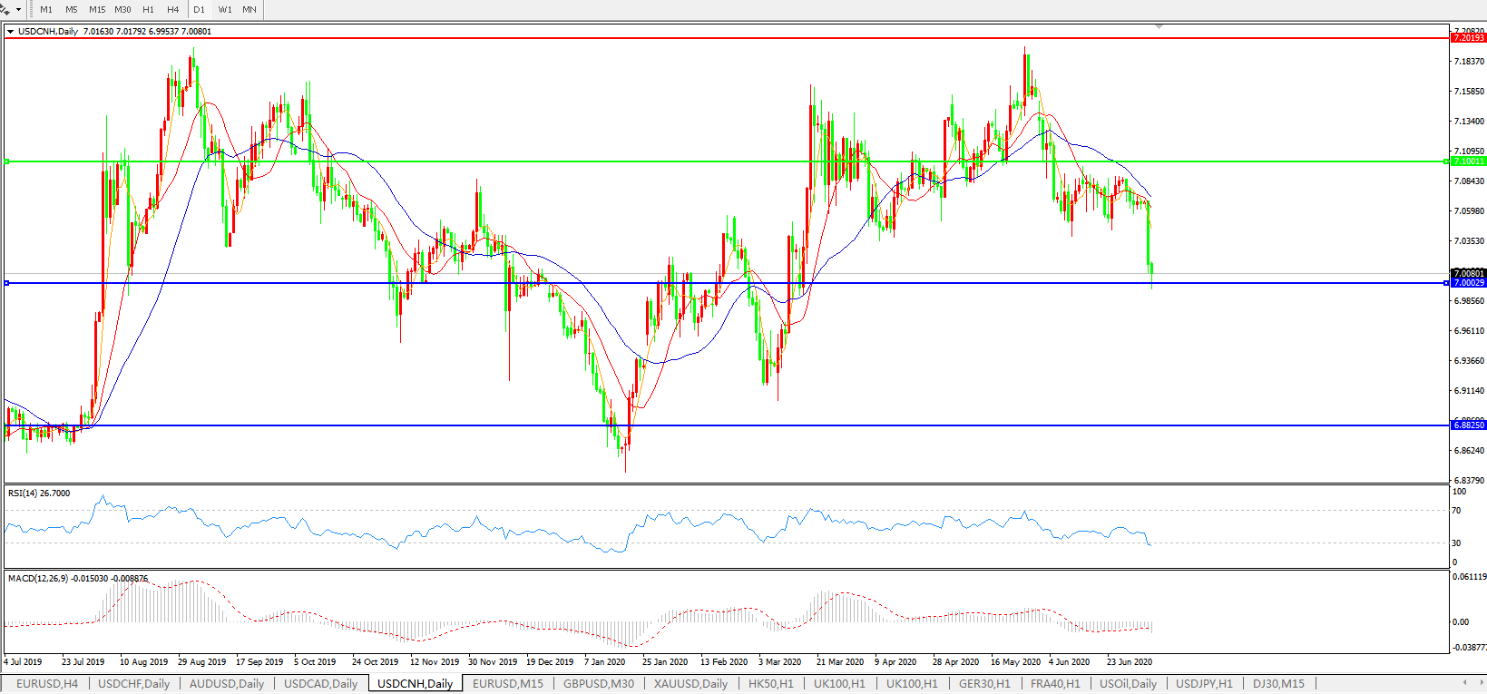 交易策略: 在7.1000之下,看跌,目标价位为7.0000,然后为6.8820。