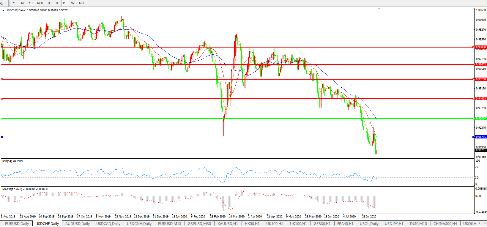 美元兑瑞郎USDCHF    日线图: