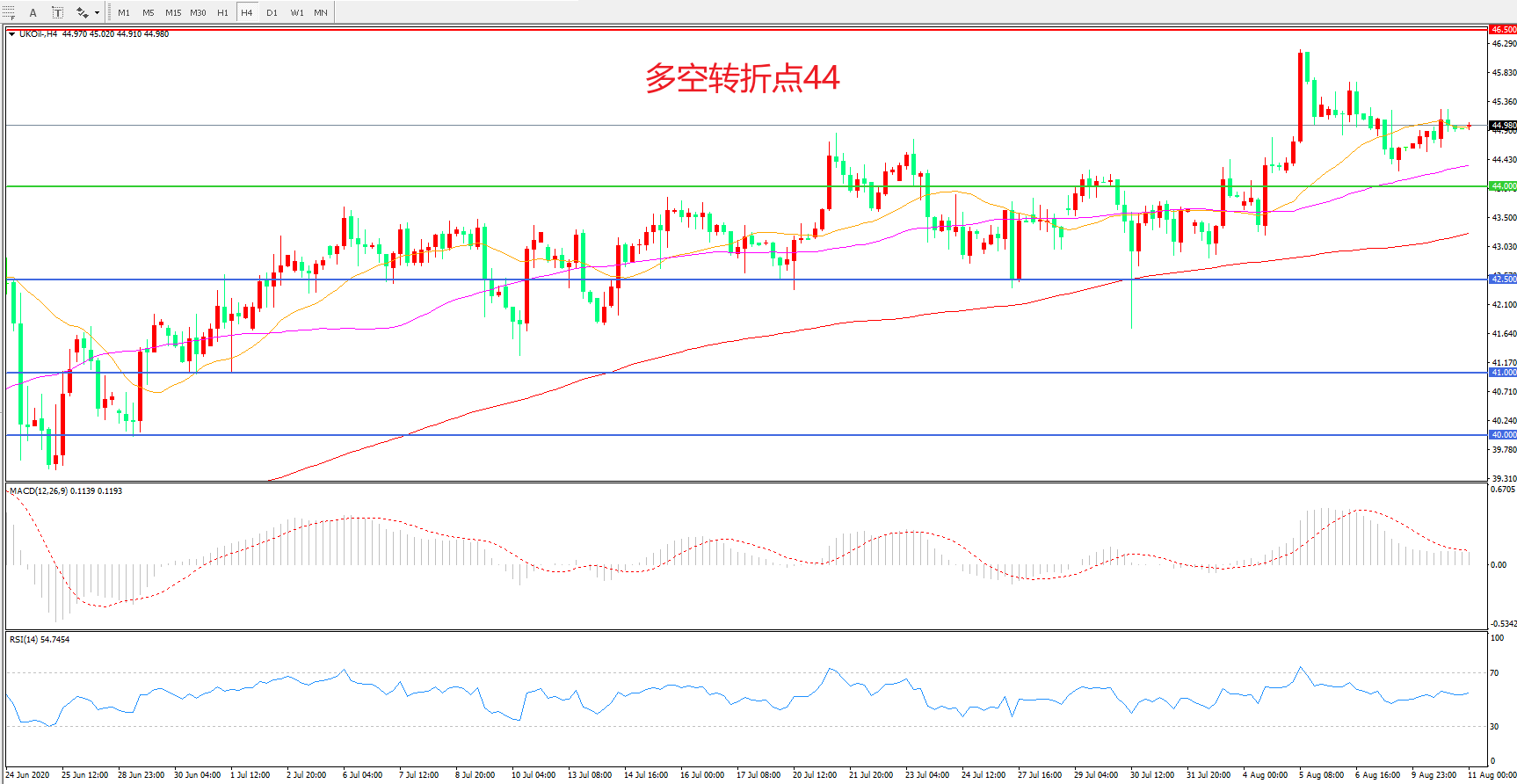 交易策略:  在44.00之上看涨,目标46.50      49.00