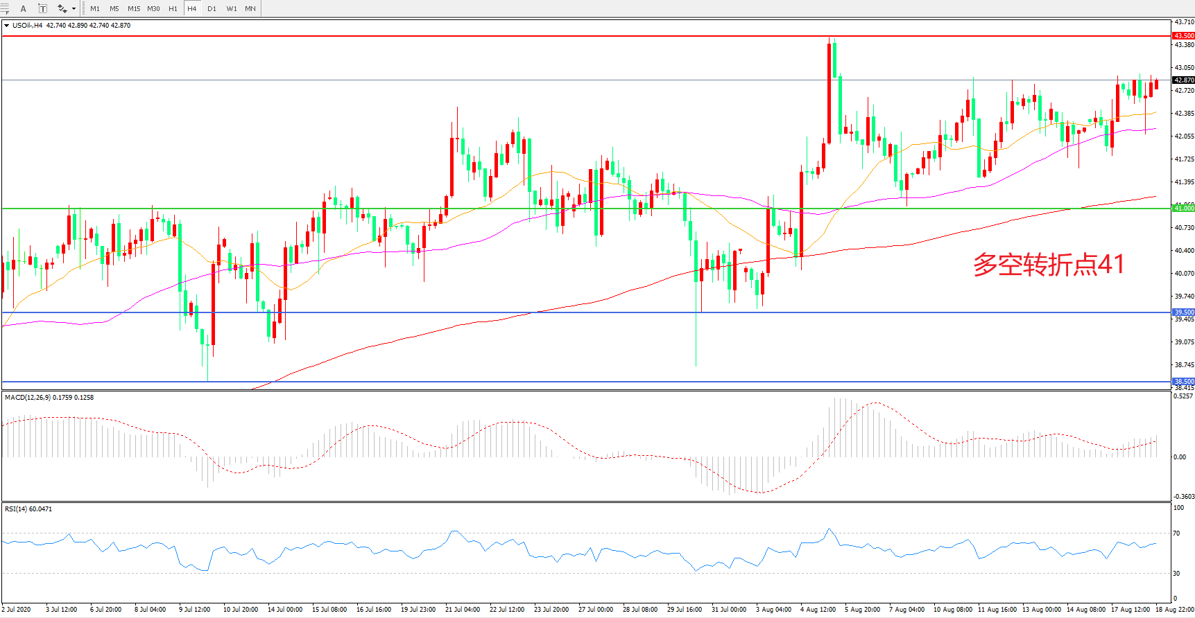 交易策略:在41.00之上看涨,目标43.50         46.00