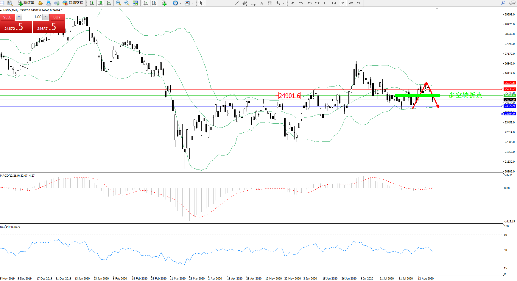 香港恒生指数8月20日(周四)收盘下跌387.52点,跌幅1.54%,报24791.39点;港股三大指数大幅收跌,恒指一度大跌超2%,尾盘略有回升。半导体股和航空股逆势领涨,美兰空港大涨超8%,中芯国际涨3.26%;苹果概念股小幅上涨,瑞声、丘太科技均涨超1.3%;小米涨2%,美团点评尾盘拉升,收涨1.56%。今日南下资金净流入17.3亿港元,大市成交额为1181亿港元。据北京日报,20日下午,香港特区政府发言人宣布,考虑到最新疫情发展情况,为应对广大市民和企业的需求,从8月24日起,政府部门将逐步恢复更多早前暂停或缩减了的基本公共服务。特区政府发言人同时列举了香港房屋委员会、劳工处、工业贸易署等部门从8月24日起调整的相关公共服务具体内容。