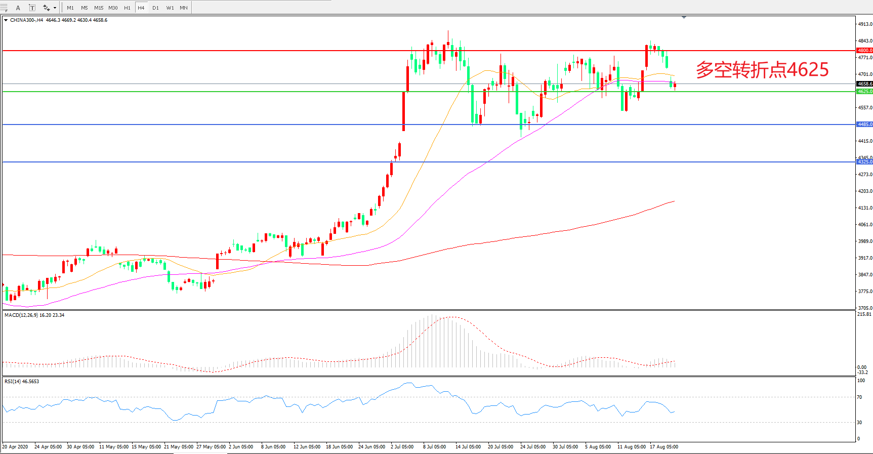多空转折点:4628.00