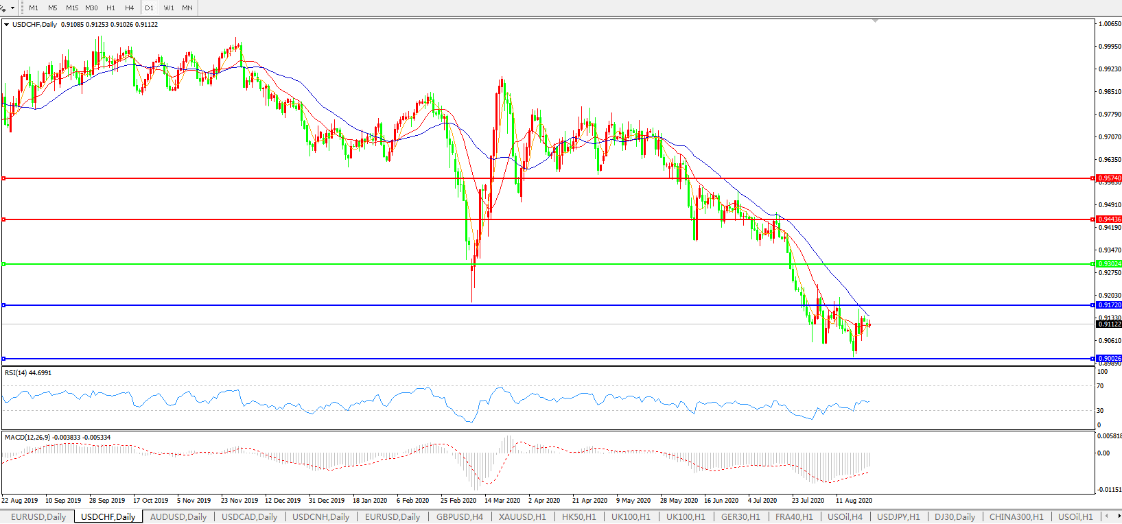 美元兑瑞郎USDCHF 日线图: