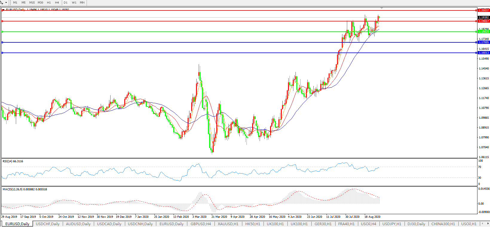 交易策略:1.1800上方看涨,目标1.1900、1.2000