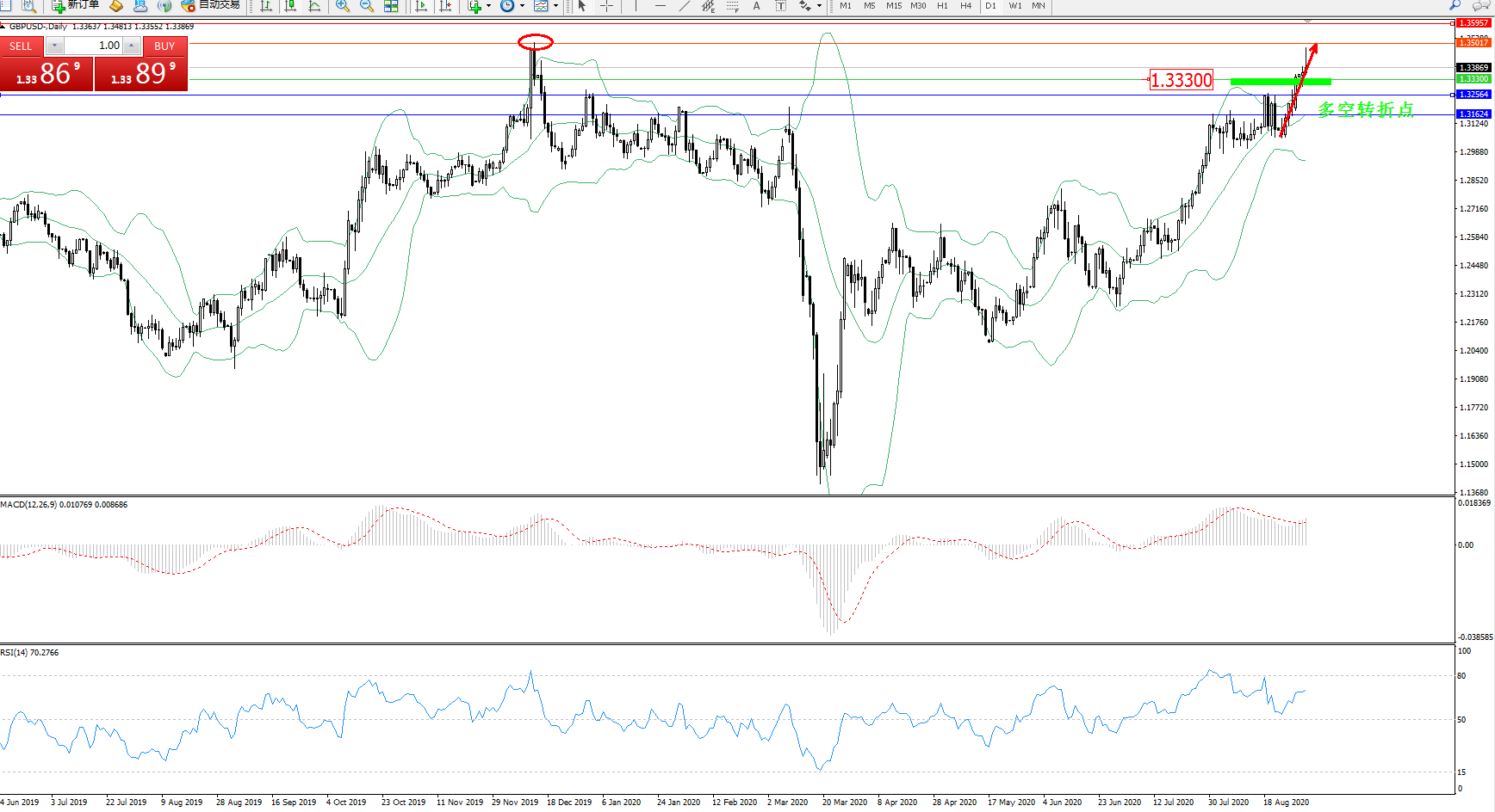 交易策略:1.33300上方看涨,目标1.35017、1.35957