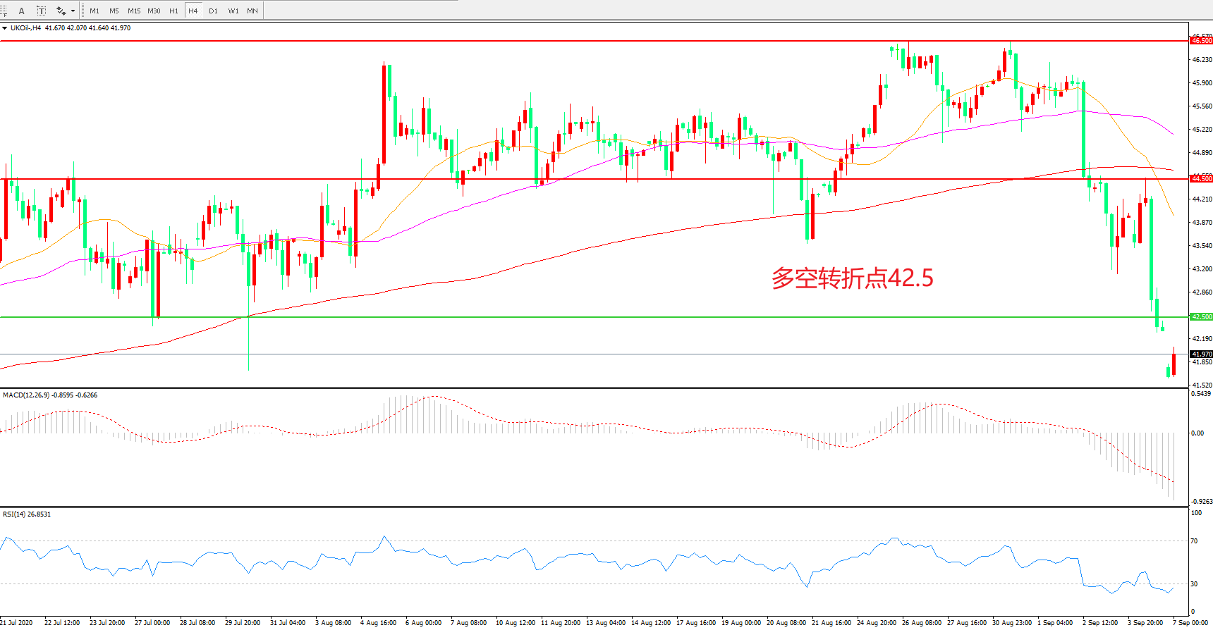 交易策略:   在42.50之下看跌,目标40.00      37.00