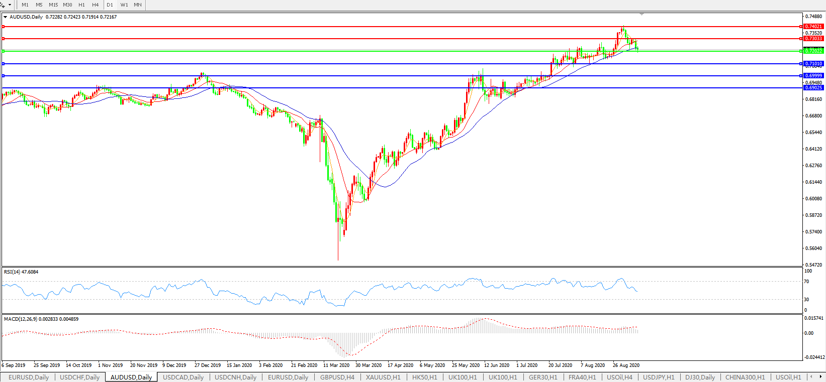 备选策略:0.7200上方看涨,目标0.7300、0.7400