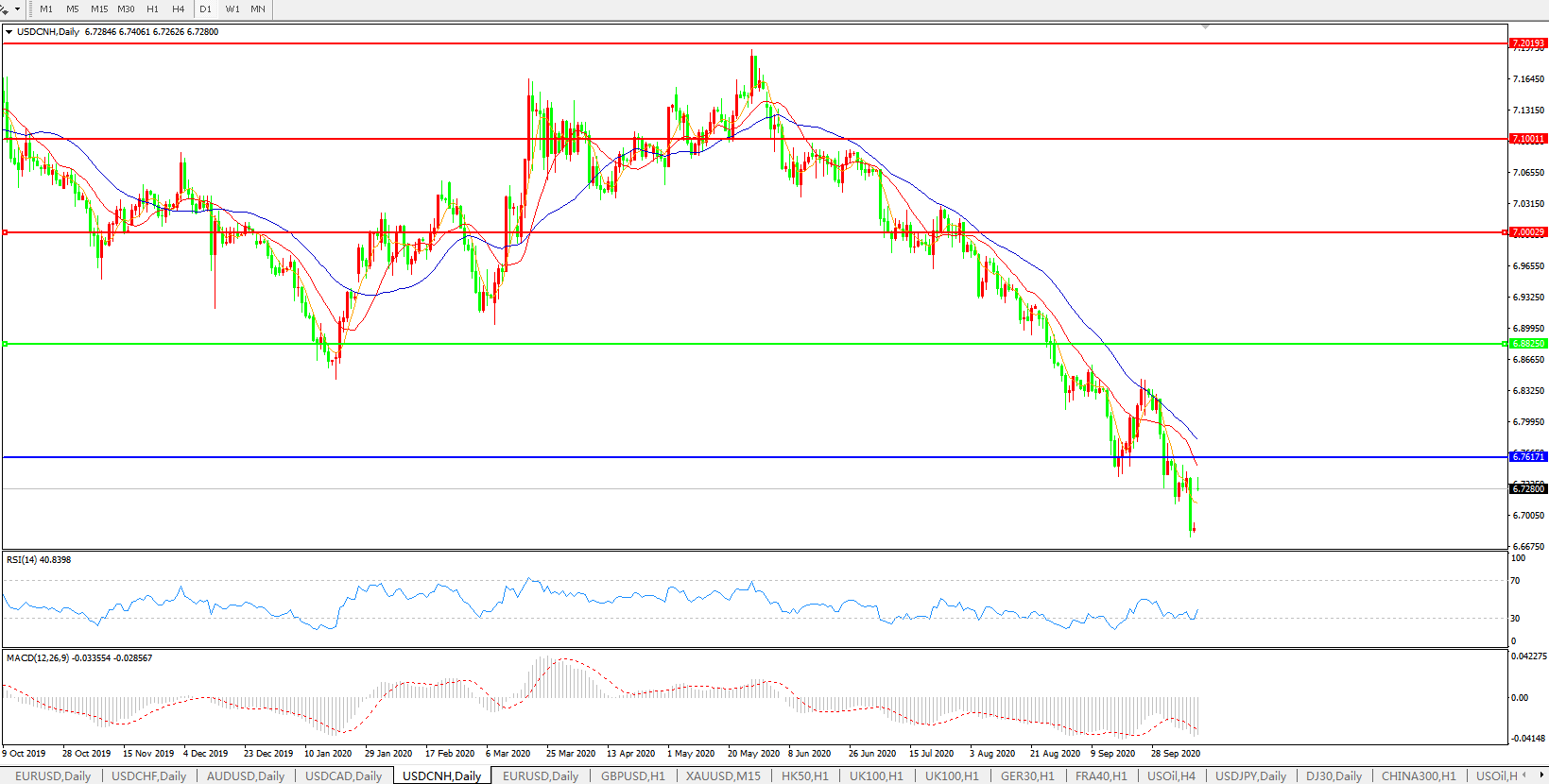 美元兑人民币USDCNH    日线图:
