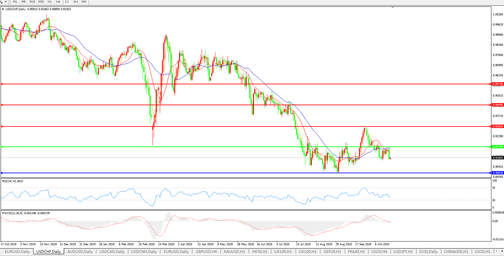 美元兑瑞郎USDCHF 日线图: