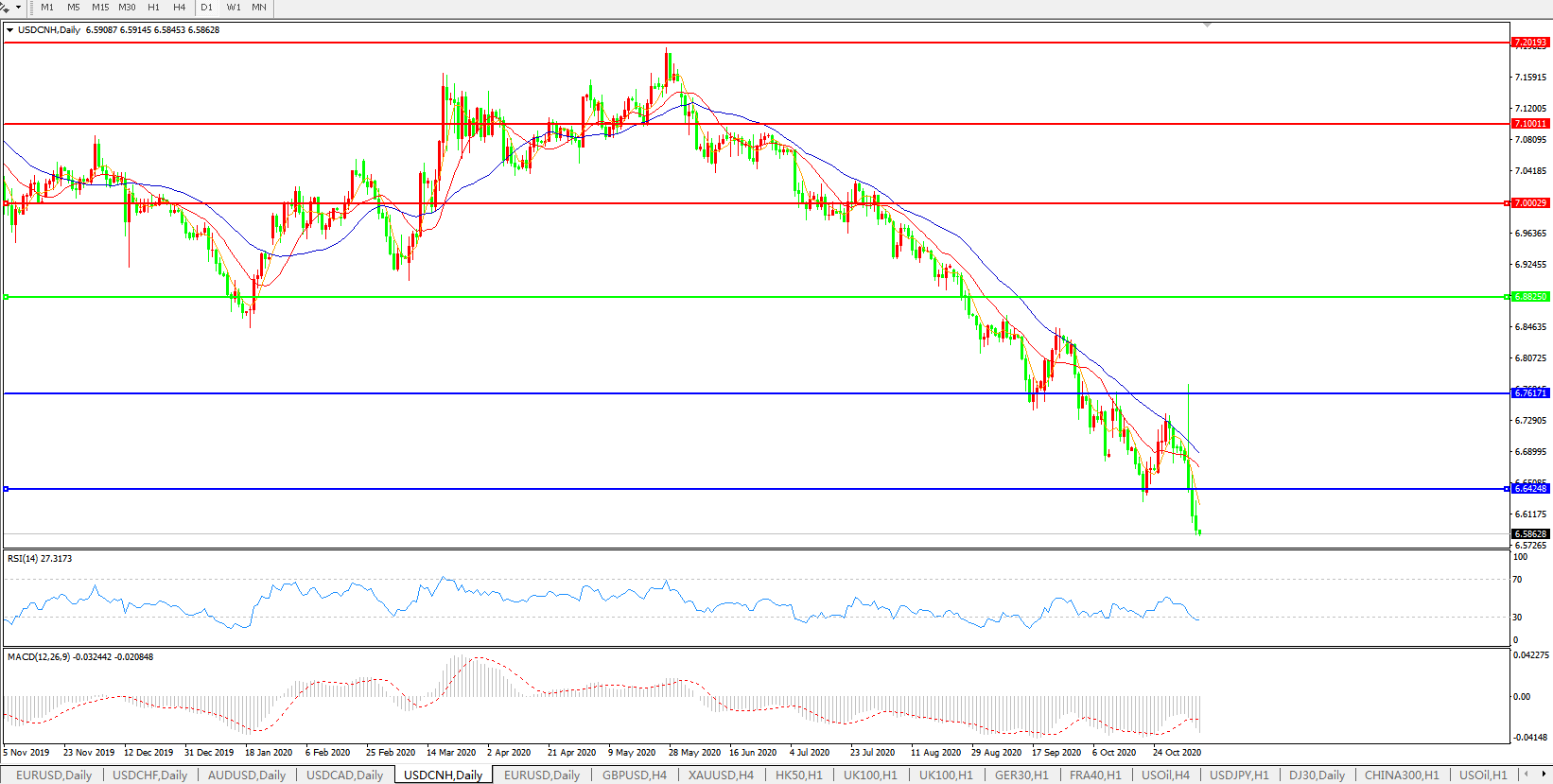 人民币兑美元即期周五收盘与中间价均创逾28个月新高,不过升幅较昨日明显收窄,离岸人民币盘初逼近6.6关口刷新逾28个月新高;交易员称,美国大选拜登更显优势持续提振风险偏好,人民币整体偏强;他们并指出,美联储周四维持宽松货币政策不变,在疫情肆虐情况下,进一步宽松似乎不可避免,中长期美元仍面临下行压力; 一中资行交易员称,有明显的购汇盘需求在里面,市场头寸盘的整体感觉还是美元空头为主;市场主基调还是美国大选,在没有百分百结果出来前,后续依然有更大的不确定性;招商证券宏观团队分析,短期而言,大选预期对美指产生影响,拜登胜选对应着弱美元预期;中长期而言,美元进入弱势周期; 美国民主党总统候选人拜登周四接近赢得大选,今年的选情异常胶着,很多州的选票都非常接近,特朗普则加大了影响计票的法律攻势,并在未经证实的情况下宣称选举舞弊;而美联储周四维持宽松货币政策不变,并再次承诺将在未来几个月竭尽全力让美国经济复苏得以持续;全球汇市方面,美元周五兑许多货币企稳,但交易商称可能会进一步下跌,因胶着的美国总统大选降低很快出台大规模刺激措施支撑经济的希望。