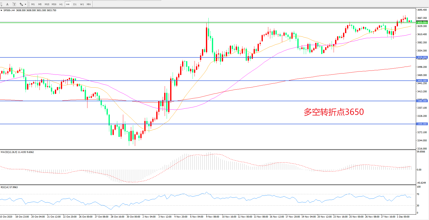 多空转折点:3650.00