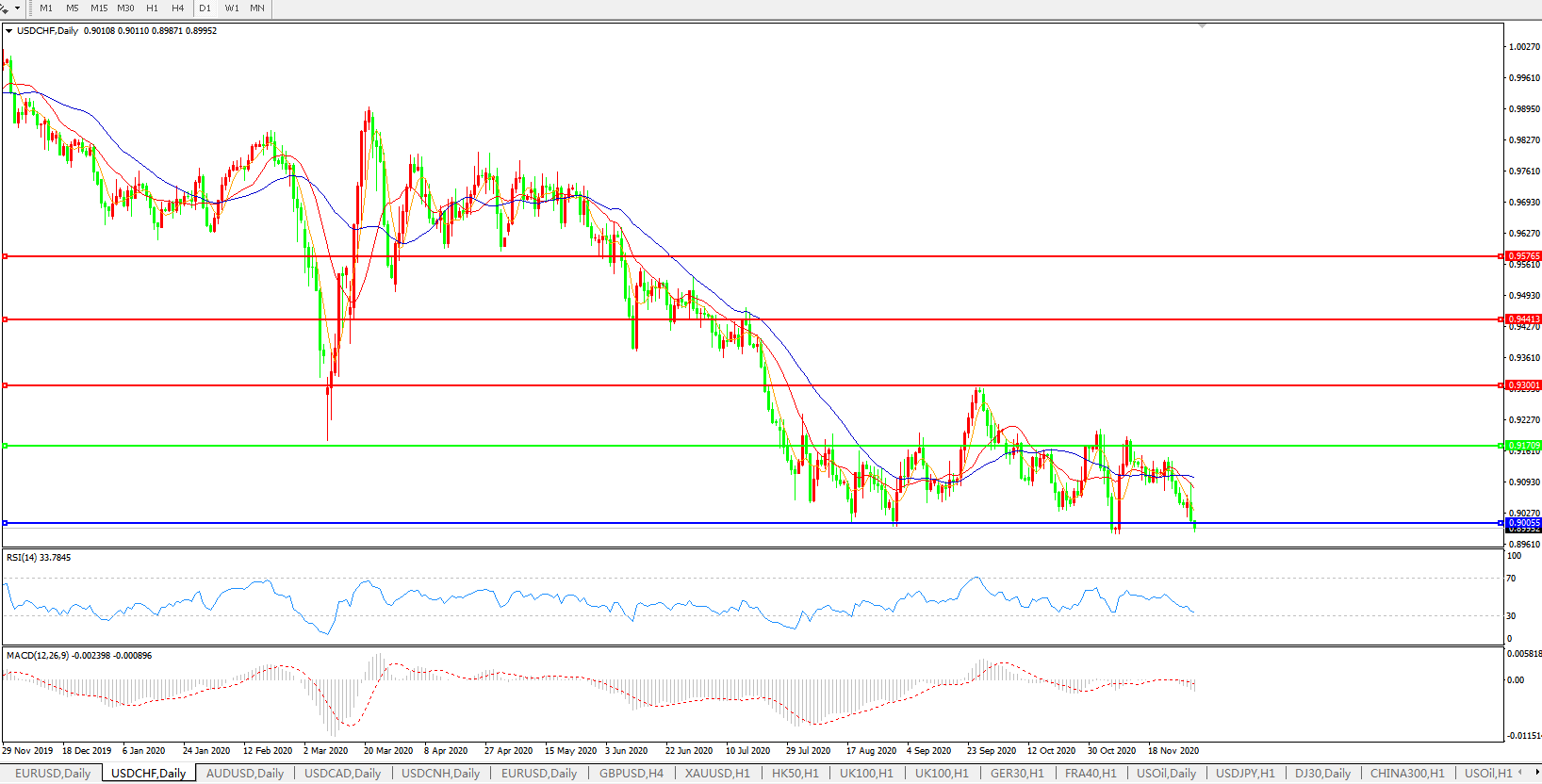美元指数季节性弱势,美元兑瑞郎加速下行
