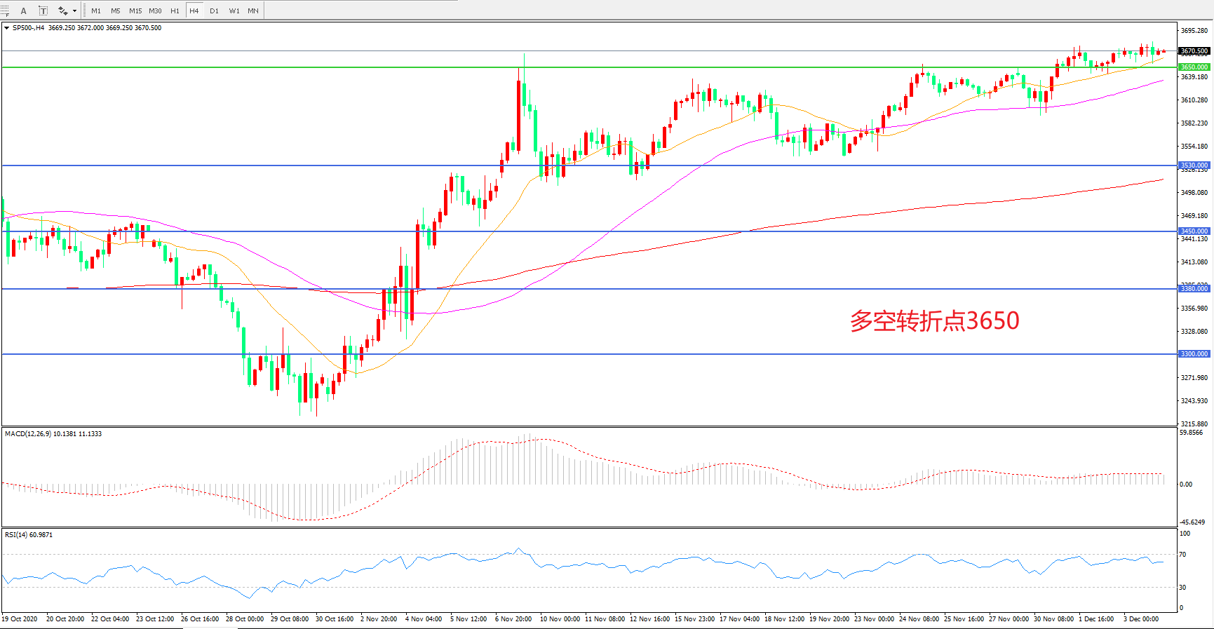 周四(12月3日),美股集体高开,但辉瑞突然宣布因供应链困难将2020年新冠疫苗生产目标砍半,标普500小幅回调,收报3672.50点。大型科技股集体下挫,Facebook跌近2%,亚马逊盘初收跌0.5%。此前 “小非农”ADP数据新增30.7万人,大幅低于预期和前值,晚间即将公布的非农就业数据将成为行情运行的关键,务必重点关注。