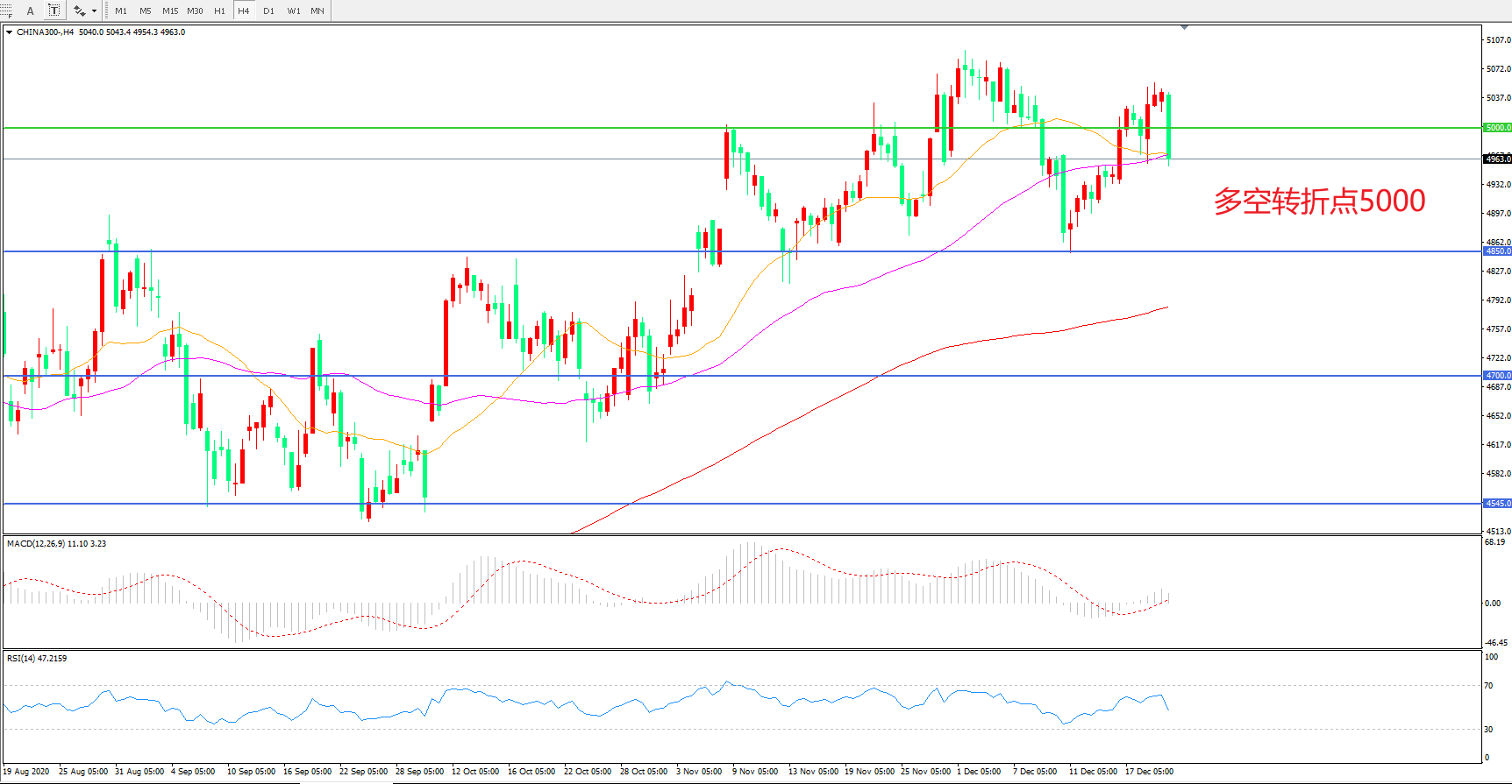 备选策略:在5000.00之下看跌,目标4850.00       4700.00