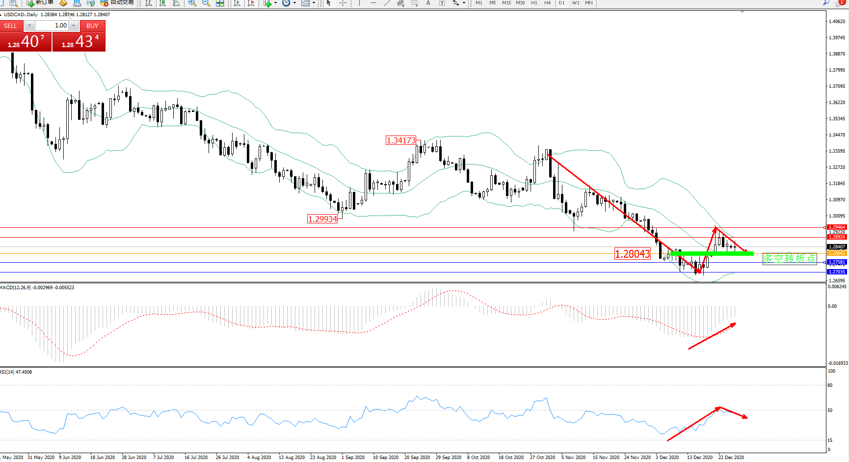 交易策略:1.28043上方看涨,目标1.29464、1.28964