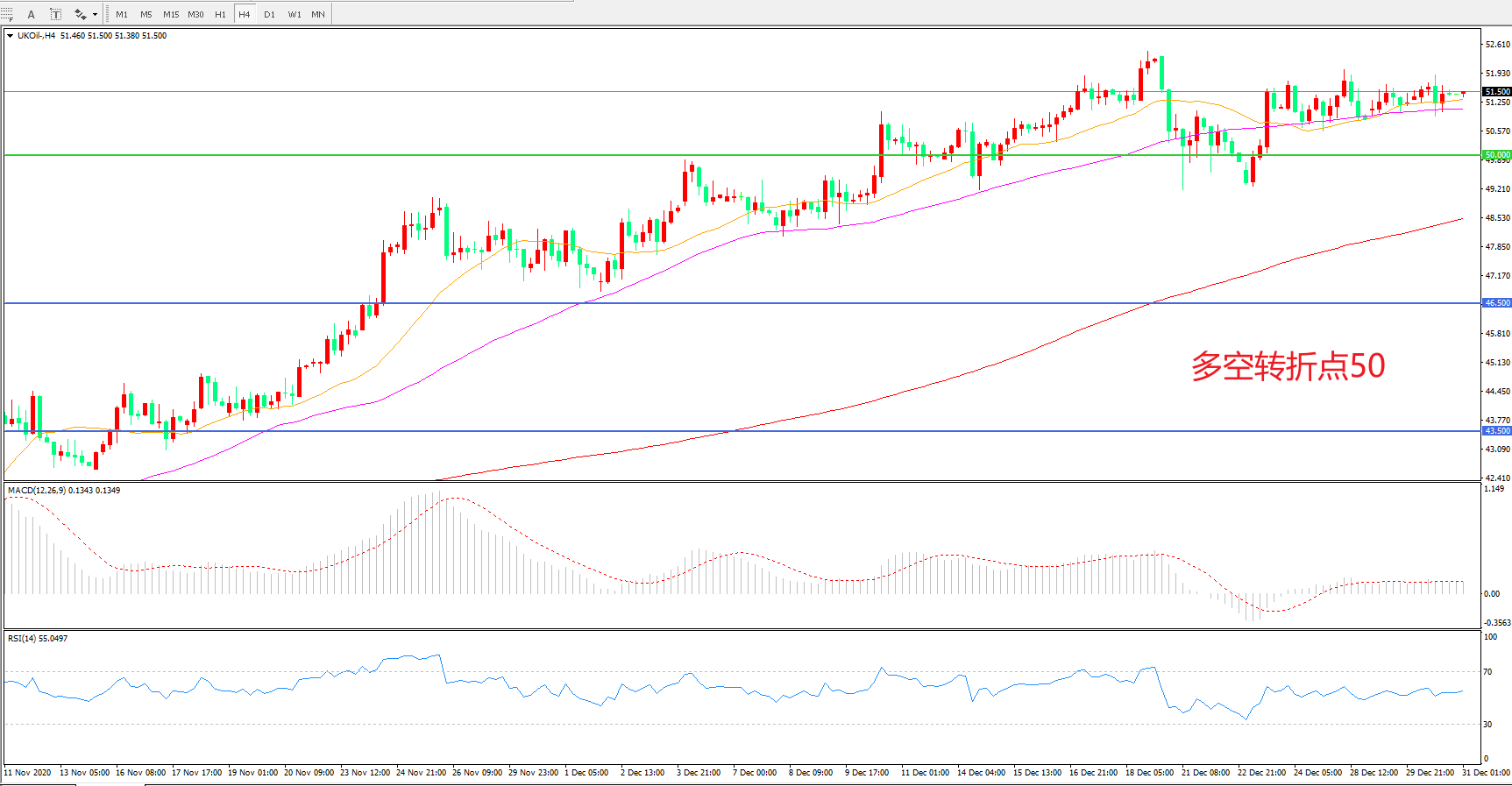 周三(12月30日),根据美国能源信息署公布的数据显示,当周EIA原油库存降幅超预期,利好油价,但由于双旦假期,价格整体波动幅度有限,布伦特原油延续高位震荡,收报51.47美元/桶,越来越多的迹象说明,多头对市场的把控力已经慢慢消退。