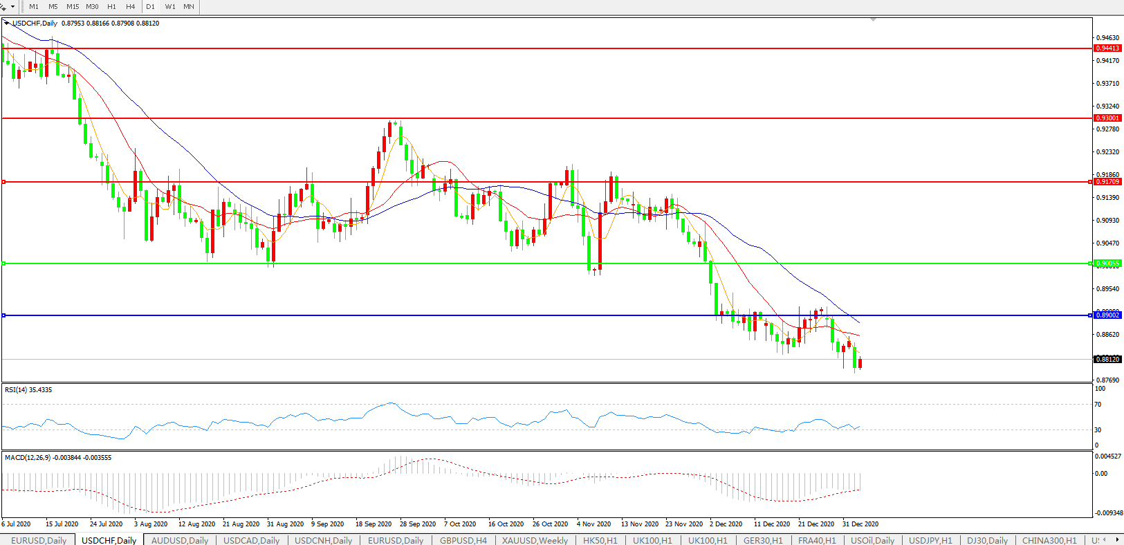 美国政局牵动市场,美元兑瑞郎延续弱势