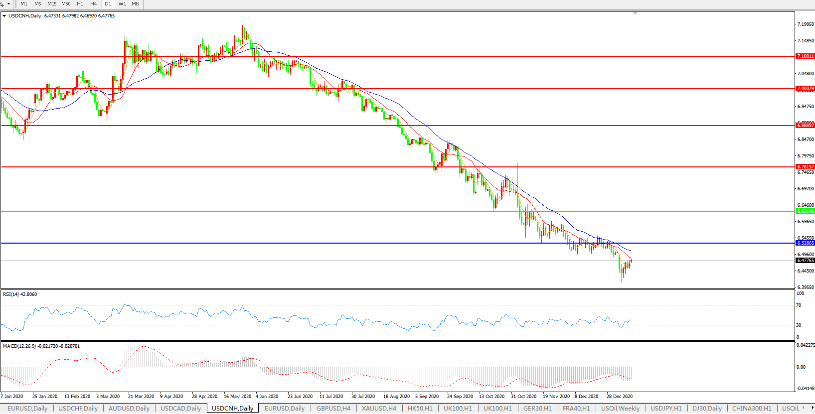 备选策略: 在6.6265之上,看涨,目标价位为6.7615,然后为6.8889。