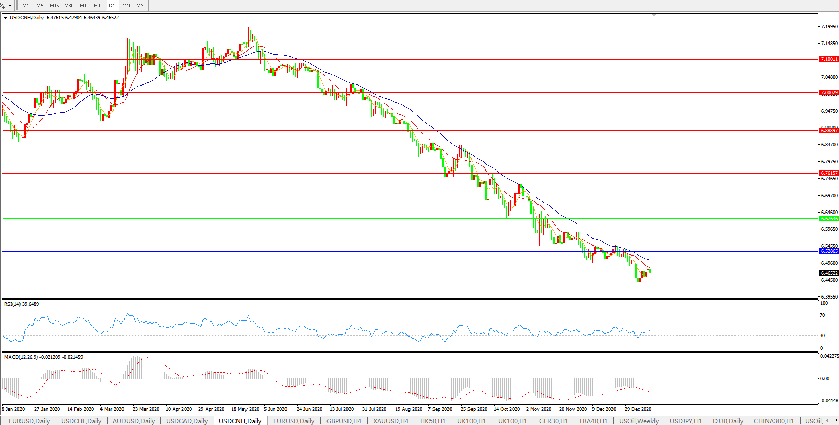 美元兑人民币USDCNH 日线图: