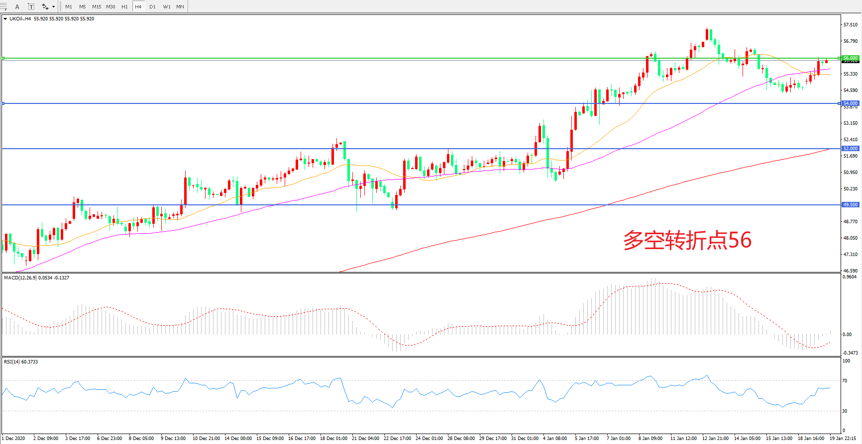 交易策略:  在56.00之上看涨,目标60.00      63.00