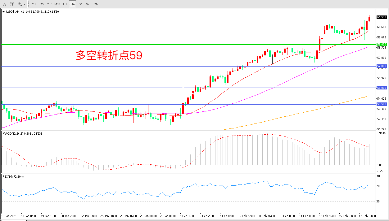 交易策略:在59.00之上看涨,目标62.00    65.00