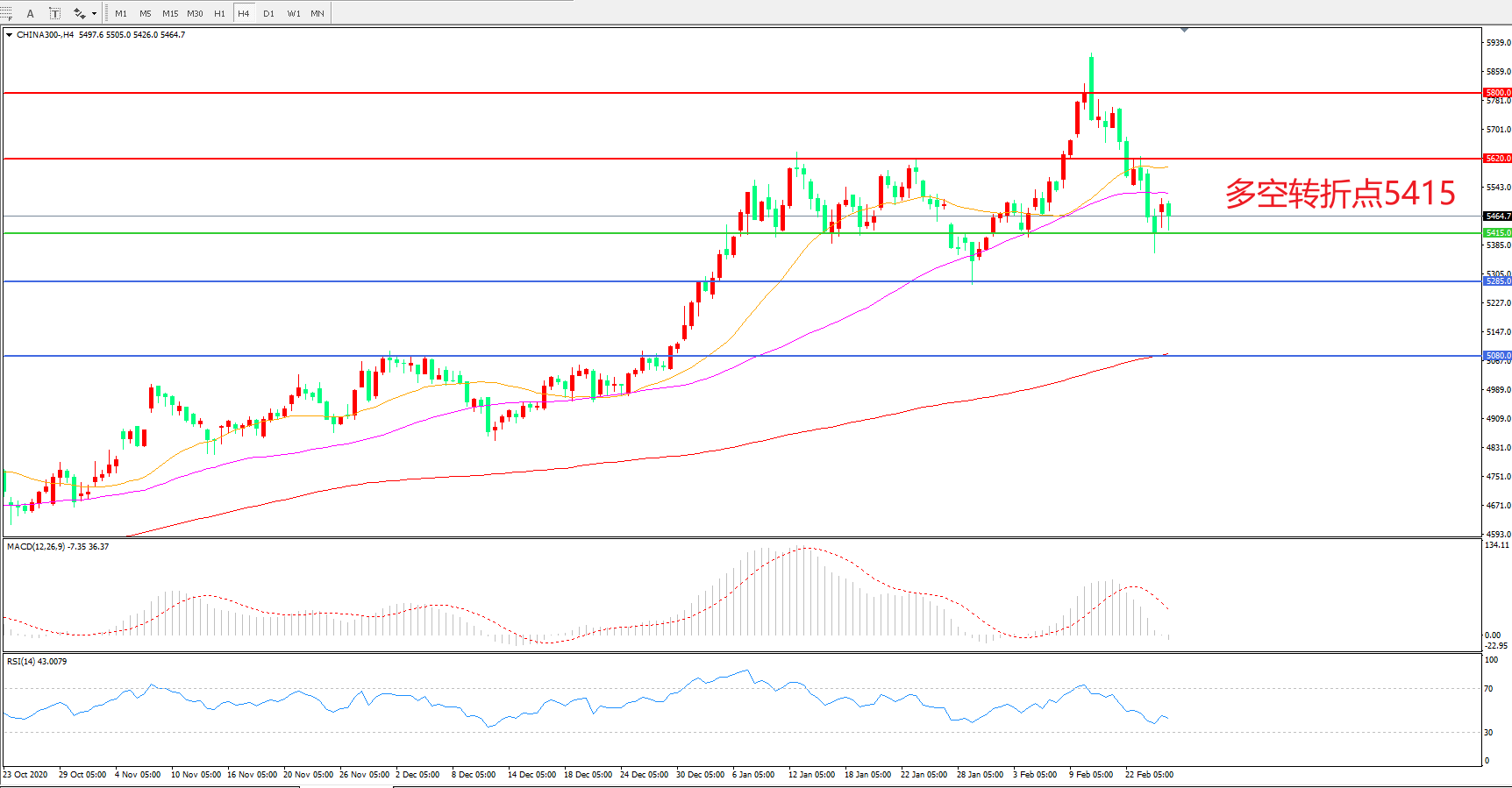 交易策略:在5415.00之下看跌,目标5285.00    5080.00