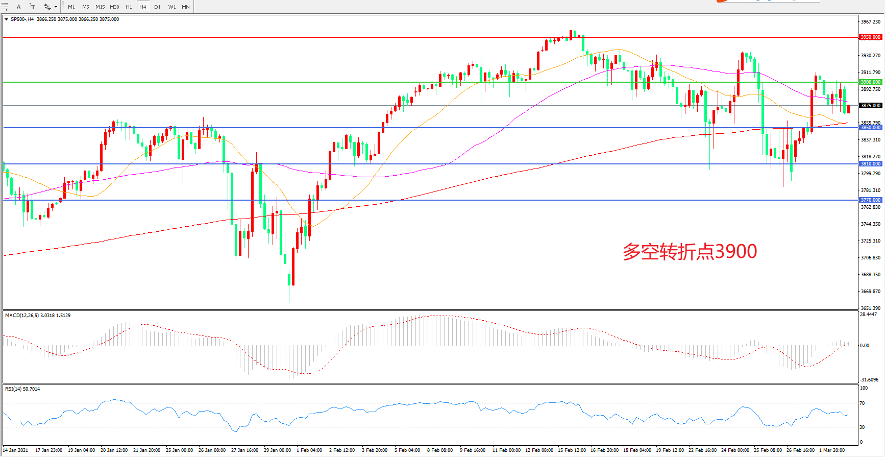 交易策略:在3900.00之下看跌,目标3850.00        3810.00