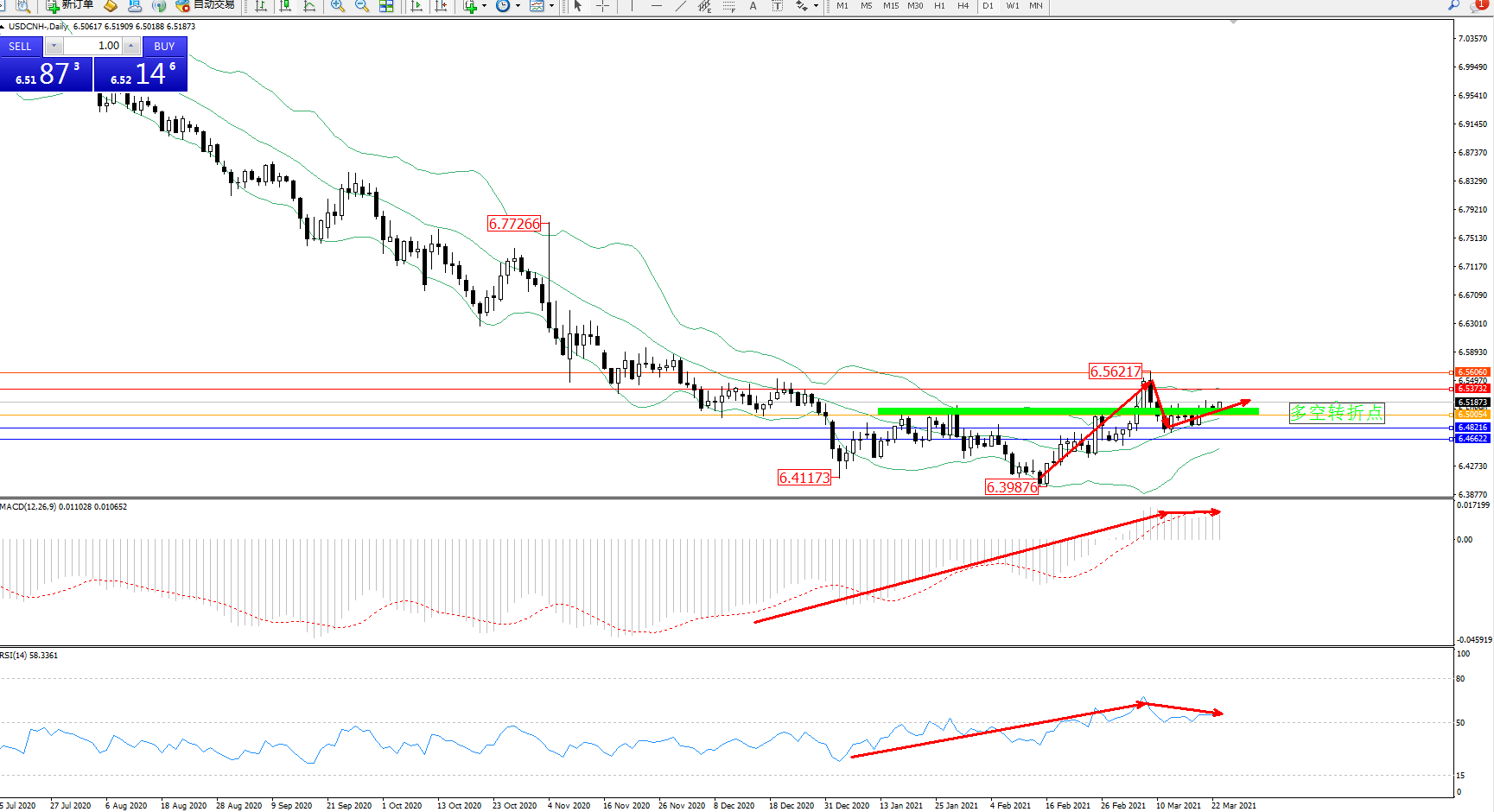 交易策略:6.50054上方看涨,目标6.53732、6.56060