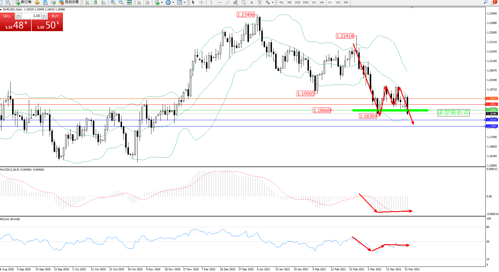 备选策略:1.18660下方看跌,目标1.18165、1.17845