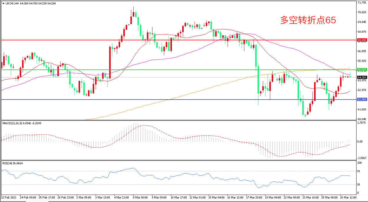 交易策略:在65.00之下看跌,目标62.00 59.00