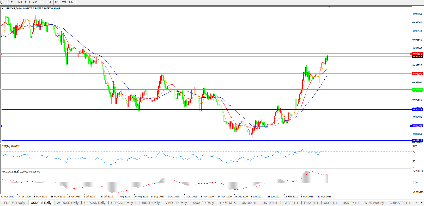 美二季度经济强劲复苏,美元兑瑞郎持续走升