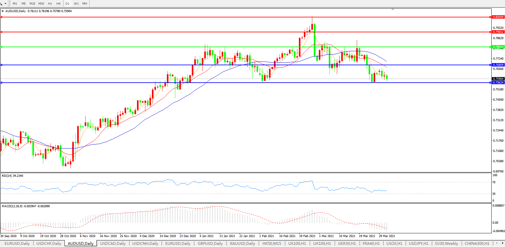 交易策略:0.7800下方看跌,目标0.7680、0.7560