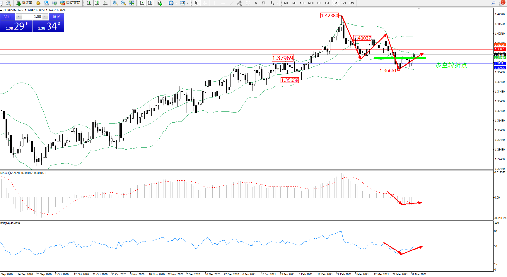 交易策略:1.37969上方看涨,目标1.38851、1.39308