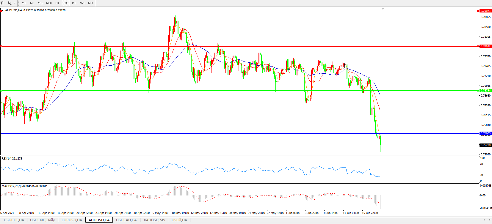 澳元下跌0.76%,至0.7552美元,为4月1日以来的最低水平。澳洲5月创造的就业机会远远超过预期,失业率降至疫情前的低点。这将考验决策者将利率保持在历史低点再两年或更长时间的承诺。澳洲联储主席洛威周四重申了这一立场。