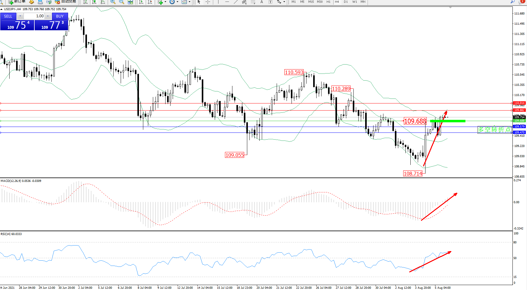 技术点评:低位多头动力强势拉升,触及布林带指标上轨附近节点后开始短暂整理,多头动力有继续向上移动迹象,布林带指标呈收口平移走势后开始有张口迹象,MACD指标处于空头区域低位震荡持续向上移动中,RSI指标处于50均衡线上方维持震荡向上徘徊;