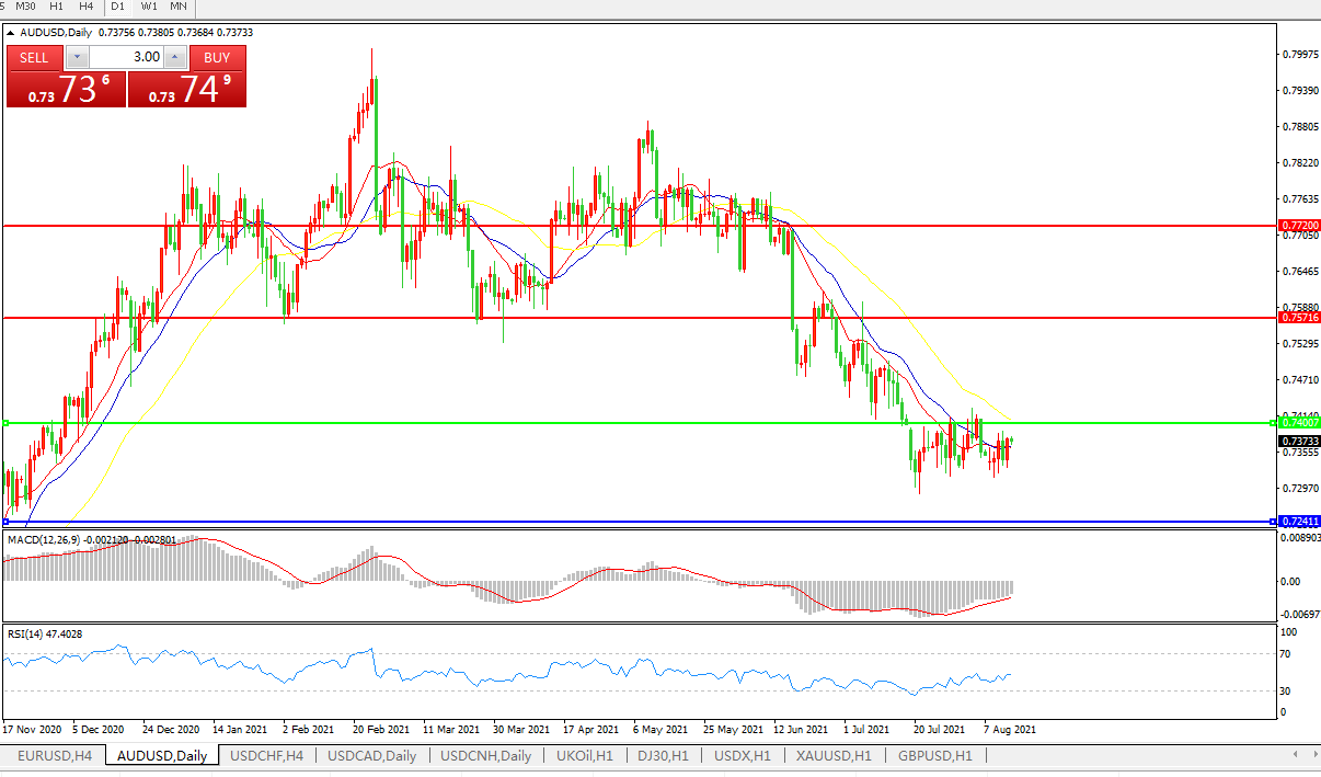 交易策略:0.7400下方看跌,目标0.7240、0.7080