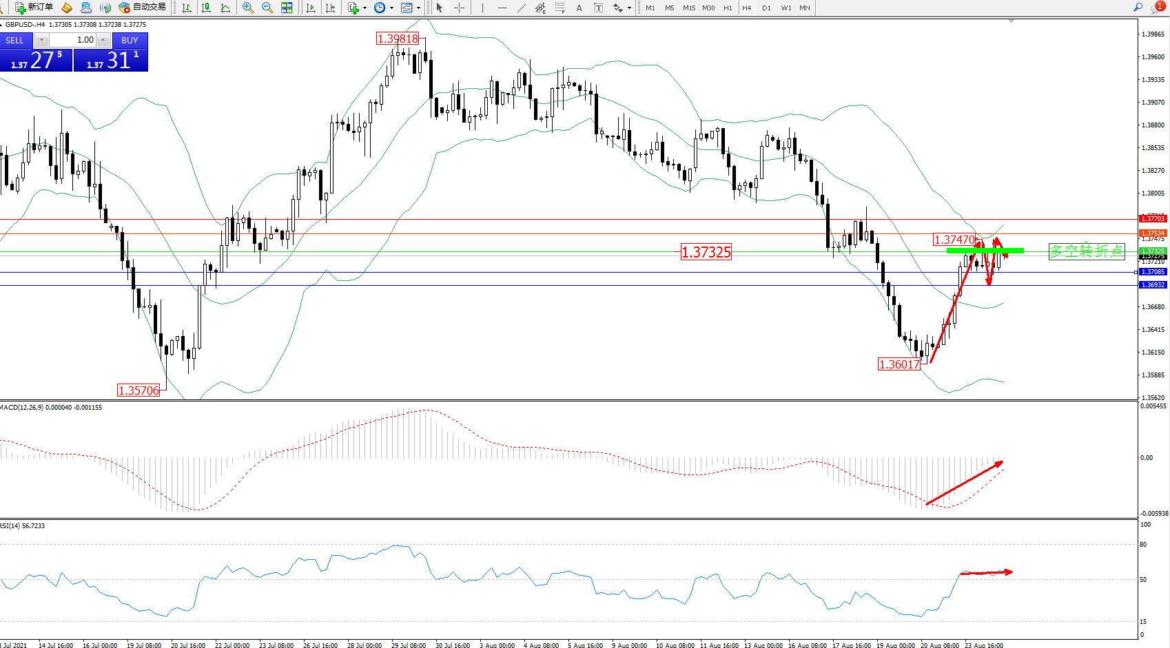 备选策略:1.37325上方看涨,目标1.37534、1.37703