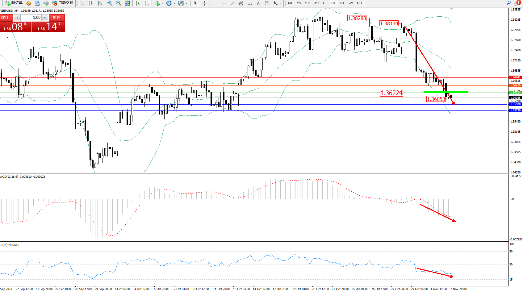 英镑美元GBPUSD ——4小时K线图显示: