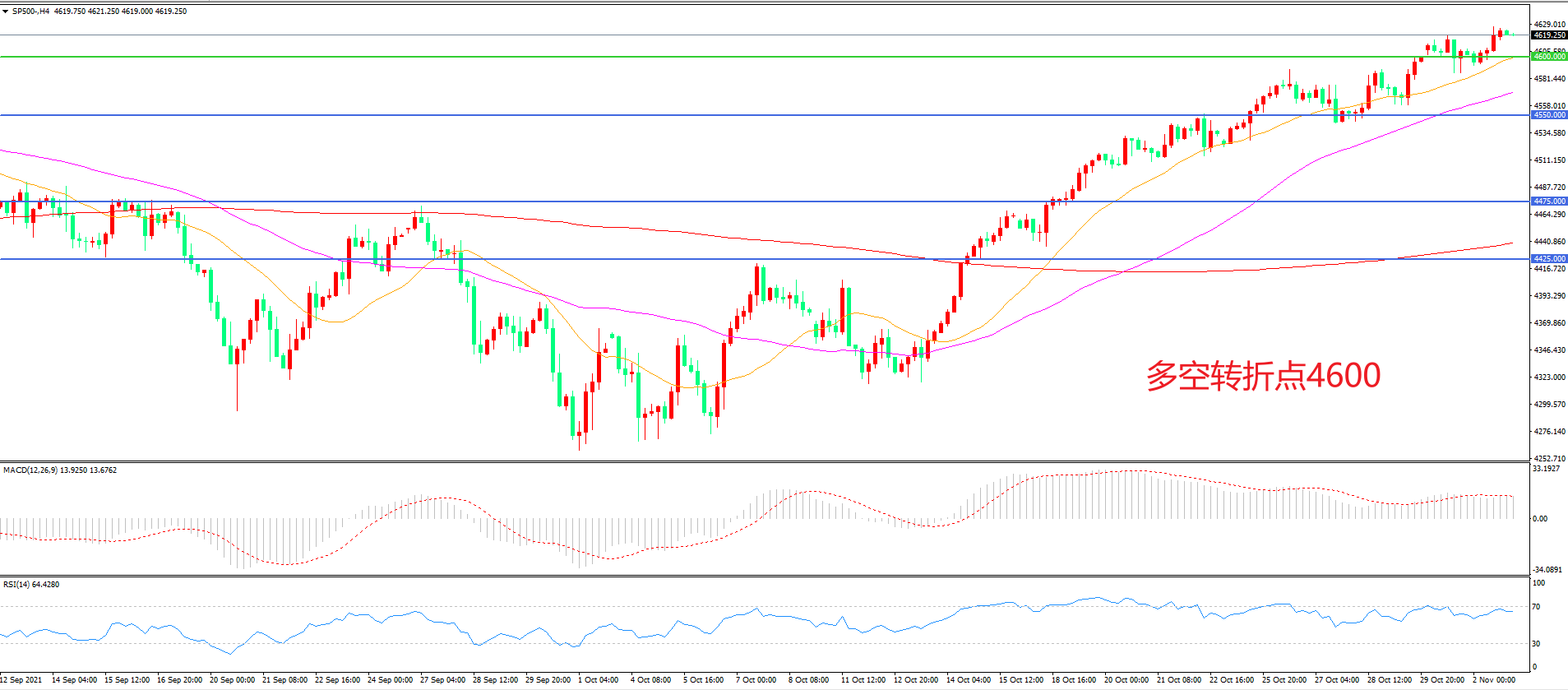周二(11月2日),杜邦、辉瑞、安德玛等企业公布的新一批三季报业绩向好,美股大盘继续上行,标普500高歌猛进,收报4620点。在大宗商品价格上涨和供应链瓶颈困扰的背景下,上市公司财报表现鼓舞了多头信心,下面的市场中心将转向本周的议息会议,美联储对于加息和缩债的态度决定了市场的中期风向。