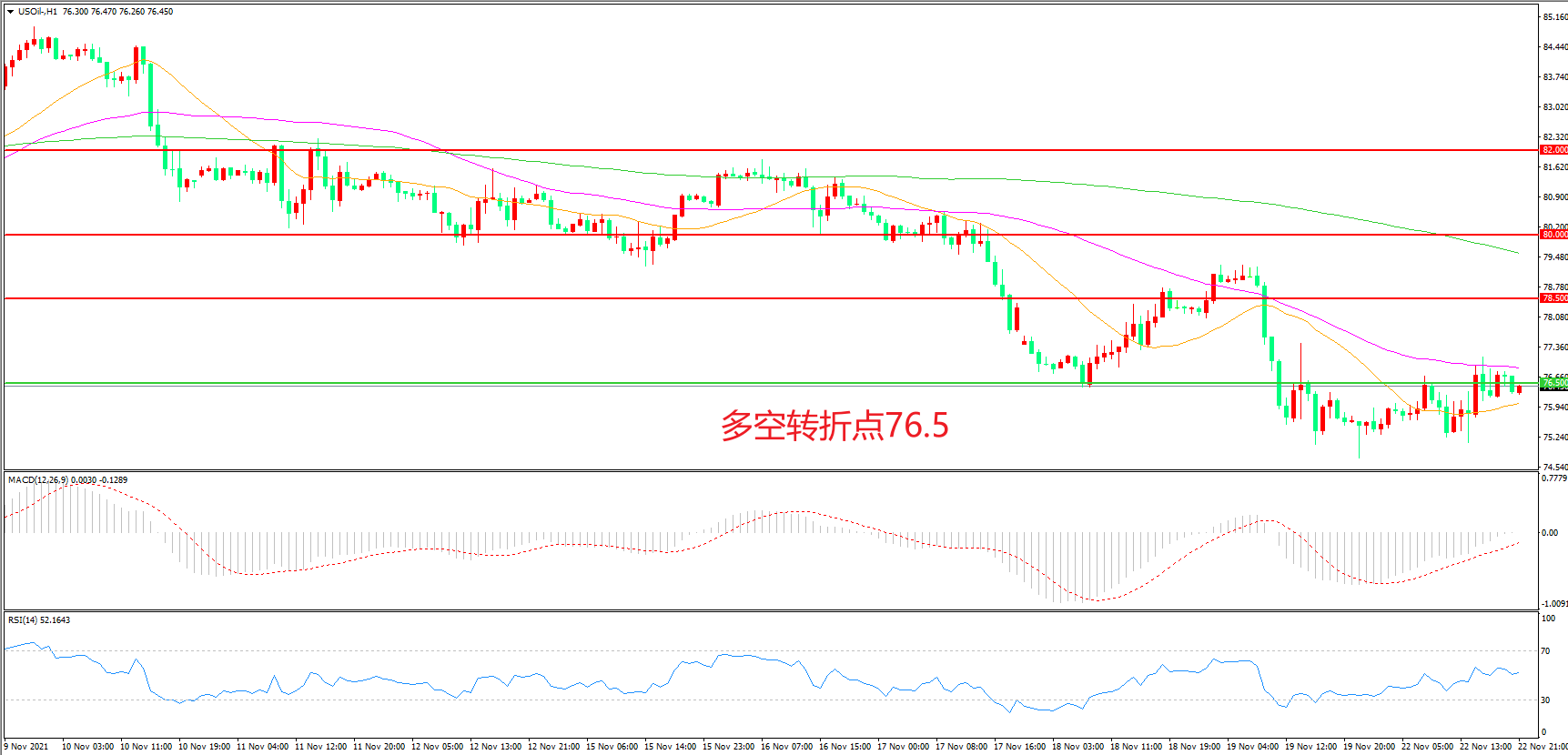 交易策略:在76.50之下看跌,目标74.00 72.00