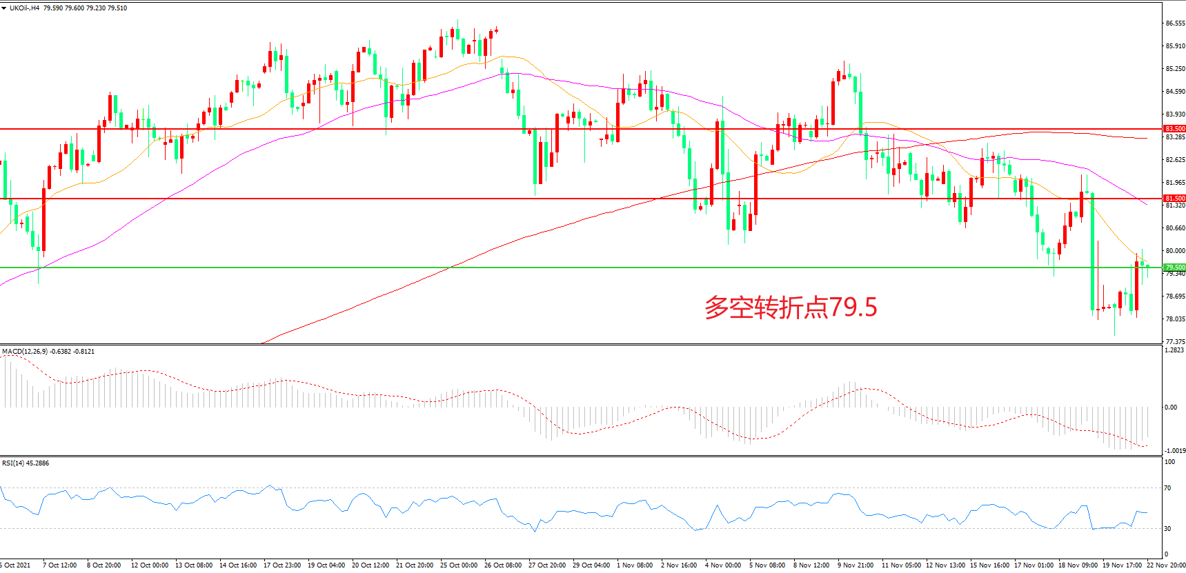 周一(11月22日),市场围绕着释放战略储备、全球疫情以及伊核协议进行博弈,美国和日本都表示有希望进行储备的释放,,布伦特原油延续低位震荡,收报79.40美元/桶。目前沙特阿拉伯和俄罗斯领导的 "OPEC+"将在下周举行会议,如果石油消费国联手释放石油储备,OPEC+产油国集团可能调整增产计划,油价将迎来更大幅度的波动。