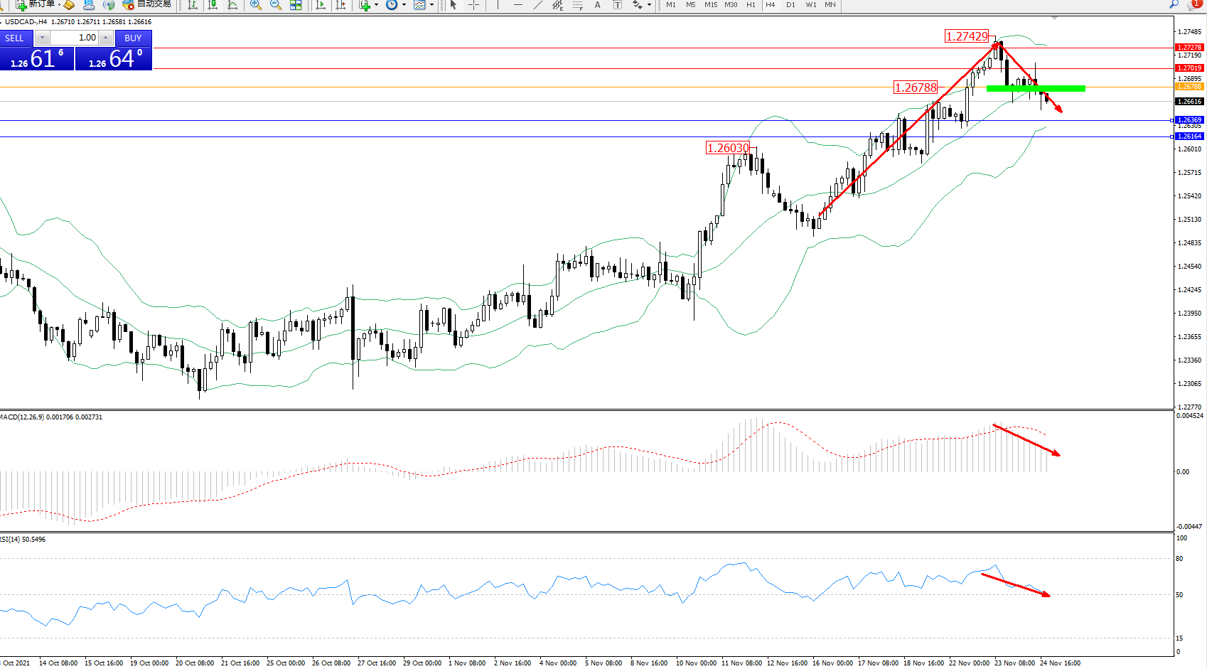 备选策略:1.26788下方看跌,目标1.26369、1.26164