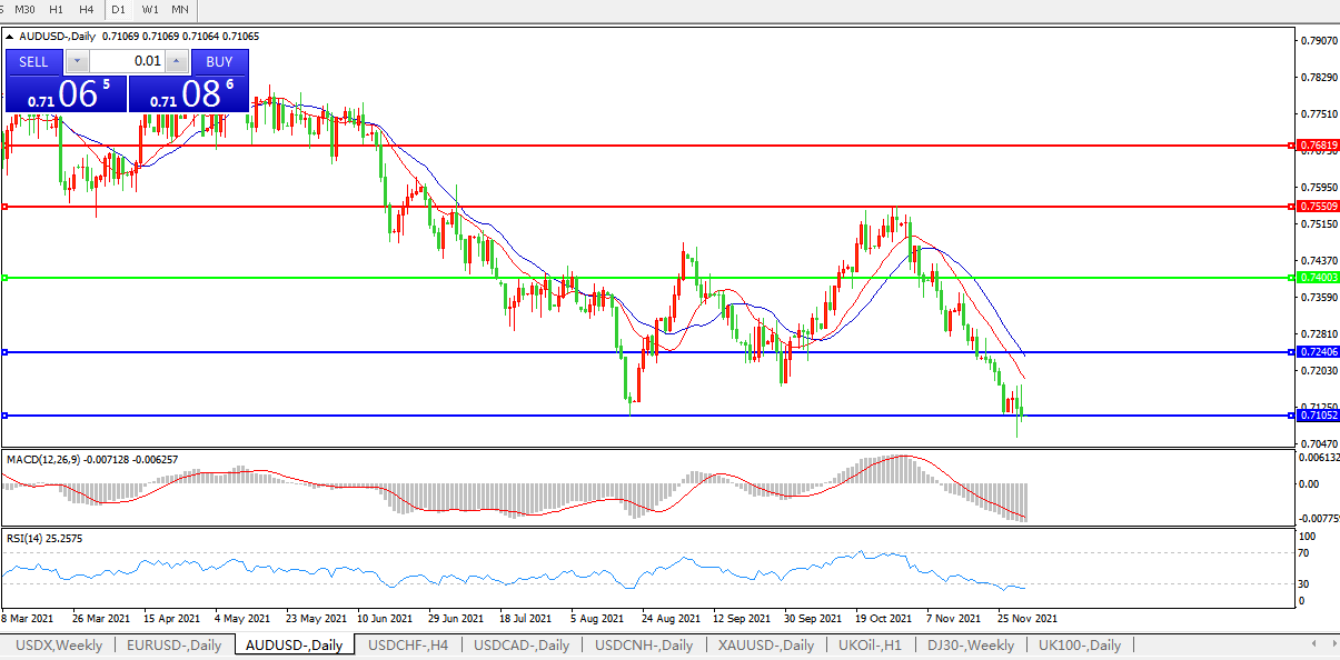 澳元美元在伦敦市场收盘前扭转涨势,成交放量,澳元兑美元尾盘跌0.31%至0.7105;纽元兑美元0.19%至0.6809。