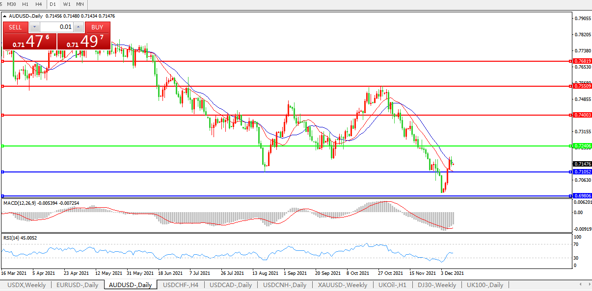 交易策略:0.7240下方看跌,目标0.7100、0.6980