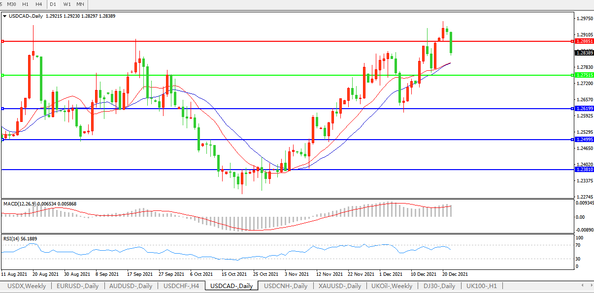 技术面简析:日图均线呈多头排列,汇价快速回落,MACD运行于0轴上且量能小幅缩量,RSI小幅走弱,预计短期汇价大概率将进一步上行。