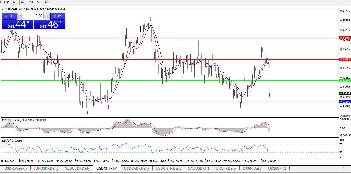 美元兑瑞郎USDCHF    4小时图: