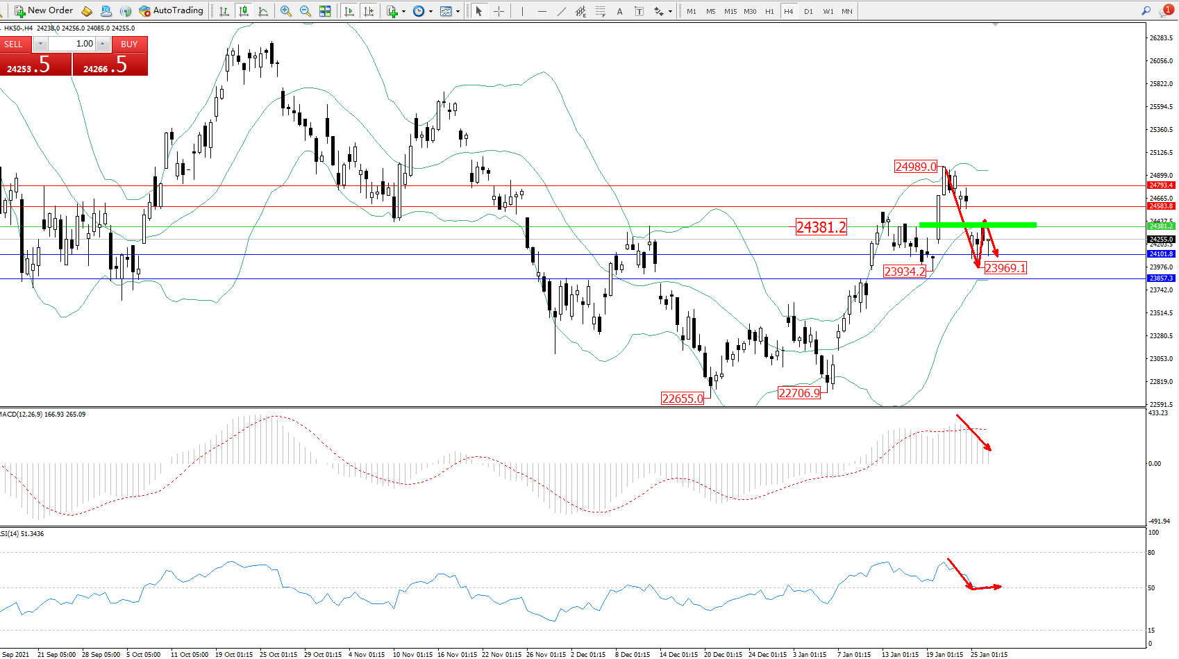 香港恒生指数1月26日(周三)收盘上涨46.29点,涨幅0.19%,报24289.9点;港股今日止跌反弹,市场情绪小幅回暖。恒生科技指数涨0.8%。大型科技股反弹明显,网易、快手涨超4%,百度涨近2%,腾讯、京东涨超1%;风电板块活跃领涨,前期强势的医药类股普跌,药明康德跌超10%,金斯瑞生物跌超9%,药明生物跌超6%。
