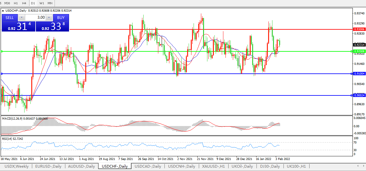交易策略:0.9200上方看涨,目标0.9300、0.9400
