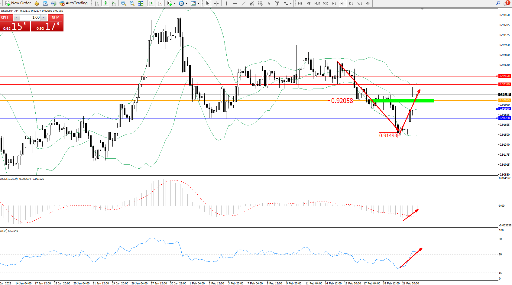 美元兑瑞郎维持0.92155附近震荡,俄罗斯延长了原定于周日结束的在白俄罗斯的军事演习。因此,焦点将集中在即将于2月24日举行的美国国务卿安东尼·布林肯和俄罗斯外长拉夫罗夫之间的会晤上。与此同时,投资者将密切关注围绕乌克兰冲突的事态发展,这将影响风险情绪,并为美元兑瑞郎提供一些推动力。美元兑瑞郎周一难以扩大其早盘的涨势,并在0.9220区域附近出现了新的抛售,现在看来,该货币对将延续过去一周左右的跌势。