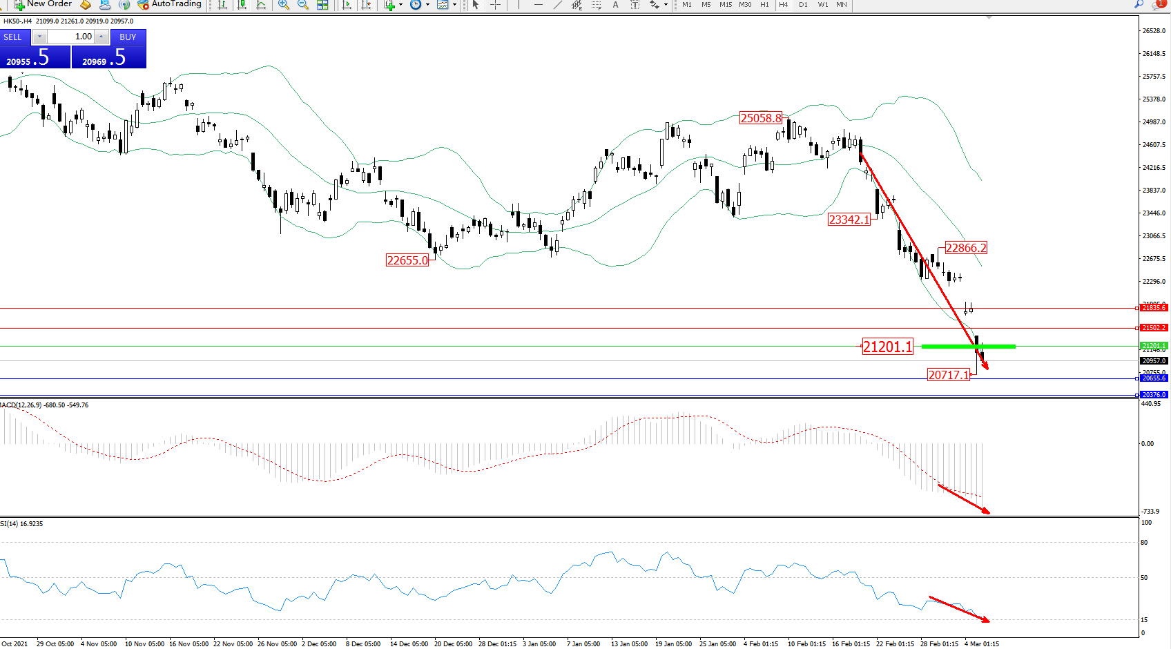 香港恒生指数3月7日(周一)收盘下跌847.66点,跌幅3.87%,报21057.63点;俄乌紧张局势持续搅动金融市场,港股再度大跌,恒生科技指数大跌4.43%续创新低,且4日连跌超12%。权重科技股引领大市走低,美团跌超11%再创调整低价,据中新网,香港特区政府发言人今日表示,3月6日内地供港的鲜活食品供应稳定,蔬菜批发价持续回落,市民无须过分采购。根据最新资料,截至6日午夜,内地经陆路和水路抵港的蔬菜供应量约2200吨。其中经由渔农自然护理署(渔护署)及蔬菜统营处各批发市场推出的内地供港蔬菜约为669吨,菜心及白菜昨天的平均批发价分别回落至每斤6.1港元及5.7港元,整体蔬菜批发价已大致回落至平日水平。鸡蛋方面,批发市场供应继续稳定充裕,过去一星期平均每日供应400万只。